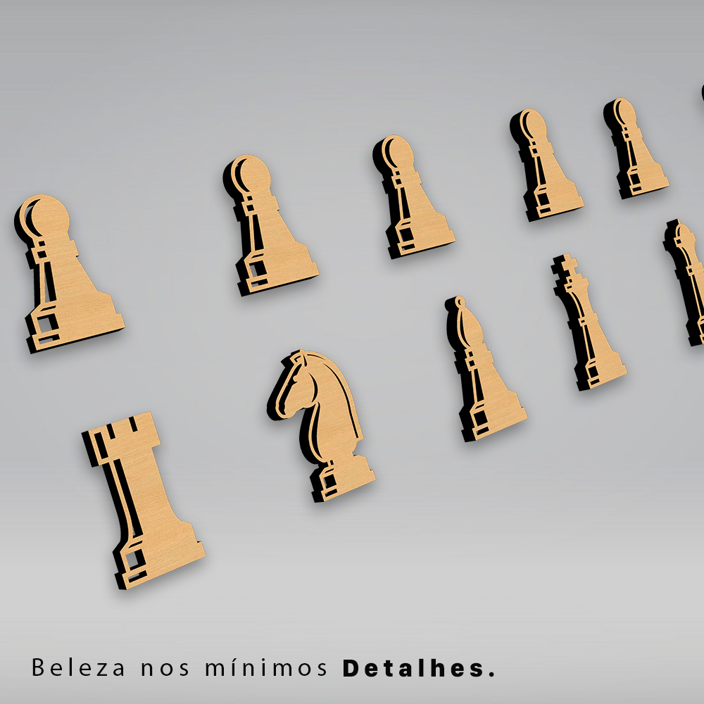 A Escultura de parede 2D " Tabuleiro de Xadrez " é produzida com duas camadas de MDF 6mm revestido frente e verso com melamina, material super moderno e resistente que gera maior proteção, durabilidade e elegância para o produto. As laterais trazem acabamento em preto, harmonizando com todos os ambientes e cores. A impressão é feita diretamente no substrato, resistente a umidade, esse modo de impressão deixa a peça ainda mais elegante, sem imperfeições. Nossas Esculturas de parede são perfeitas para decorar todo tipo de ambiente, sendo eles: Salas, Quartos, Escritórios, Condomínios e muitos outros. Garantimos satisfação, beleza e qualidade para seu ambiente.