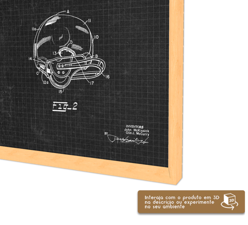 O Quadro decorativo de parede ' BluePrint, Projeto Capacete Futebol Americano ' da loja Casa do Arquiteto, é fabricado em MDF 6mm revestido Frente e Verso com Melamina, material super moderno e resistente que gera maior proteção, durabilidade e elegância para o produto. As laterais trazem acabamento preto, harmonizando com todos os tipos de ambientes. A Impressão é feita diretamente no substrato, resistente a umidade, esse modo de impressão deixa a peça ainda mais elegante, sem imperfeições e impede que a imagem perca qualidade ou enrrugue/deforme como acontece com quadros que são produzidos com papel, canvas, adesivo ou outro material não tão resistente. Protegidos frente e verso, os quadros são confeccionados em alta qualidade por profissionais que estão a mais de 25 anos no mercado de impressão.