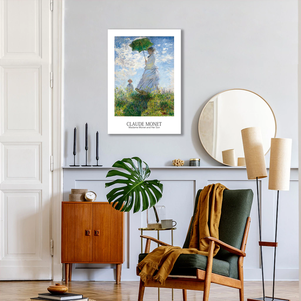 O Quadro decorativo de parede ' Claude Monet, Madame Monet ' da loja Casa do Arquiteto, é fabricado em MDF 6mm revestido Frente e Verso com Melamina, material super moderno e resistente que gera maior proteção, durabilidade e elegância para o produto. As laterais trazem acabamento preto, harmonizando com todos os tipos de ambientes. A Impressão é feita diretamente no substrato, resistente a umidade, esse modo de impressão deixa a peça ainda mais elegante, sem imperfeições e impede que a imagem perca qualidade ou enrrugue/deforme como acontece com quadros que são produzidos com papel, canvas, adesivo ou outro material não tão resistente. Protegidos frente e verso, os quadros são confeccionados em alta qualidade por profissionais que estão a mais de 25 anos no mercado de impressão.