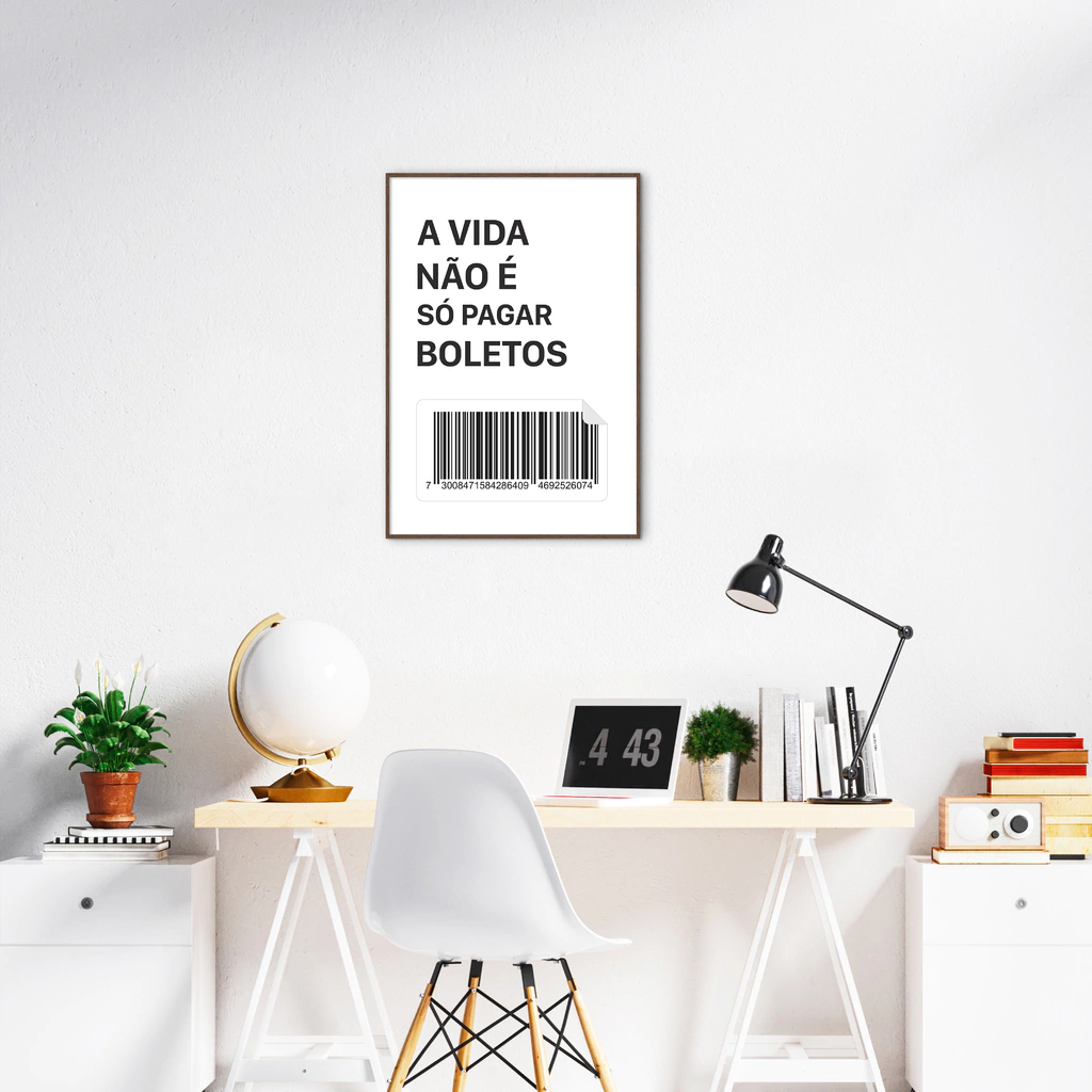 O Quadro decorativo de parede ' Frase Divertida, A vida não é só Pagar Boletos ' da loja Casa do Arquiteto, é fabricado em MDF 6mm revestido Frente e Verso com Melamina, material super moderno e resistente que gera maior proteção, durabilidade e elegância para o produto. As laterais trazem acabamento preto, harmonizando com todos os tipos de ambientes. A Impressão é feita diretamente no substrato, resistente a umidade, esse modo de impressão deixa a peça ainda mais elegante, sem imperfeições e impede que a imagem perca qualidade ou enrrugue/deforme como acontece com quadros que são produzidos com papel, canvas, adesivo ou outro material não tão resistente. Protegidos frente e verso, os quadros são confeccionados em alta qualidade por profissionais que estão a mais de 25 anos no mercado de impressão.