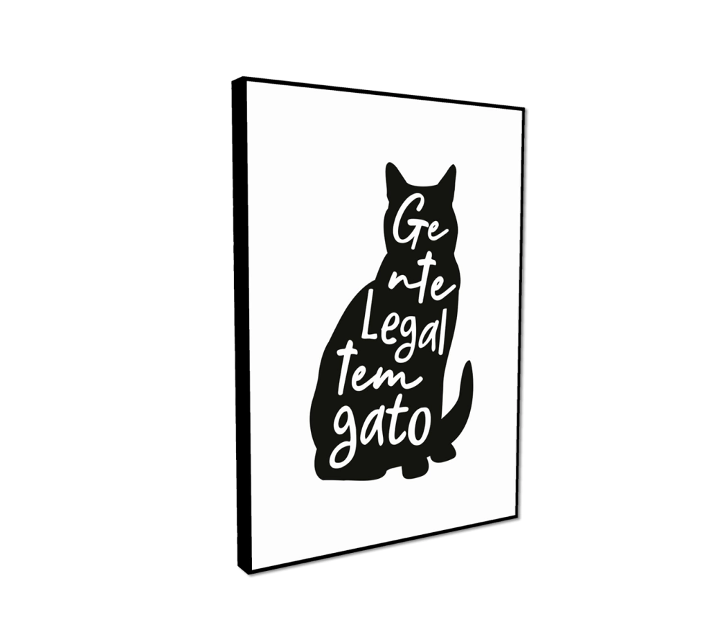 O Quadro decorativo de parede ' Frase, Gente legal tem Gato ' da loja Casa do Arquiteto, é fabricado em MDF 6mm revestido Frente e Verso com Melamina, material super moderno e resistente que gera maior proteção, durabilidade e elegância para o produto. As laterais trazem acabamento preto, harmonizando com todos os tipos de ambientes. A Impressão é feita diretamente no substrato, resistente a umidade, esse modo de impressão deixa a peça ainda mais elegante, sem imperfeições e impede que a imagem perca qualidade ou enrrugue/deforme como acontece com quadros que são produzidos com papel, canvas, adesivo ou outro material não tão resistente. Protegidos frente e verso, os quadros são confeccionados em alta qualidade por profissionais que estão a mais de 25 anos no mercado de impressão.