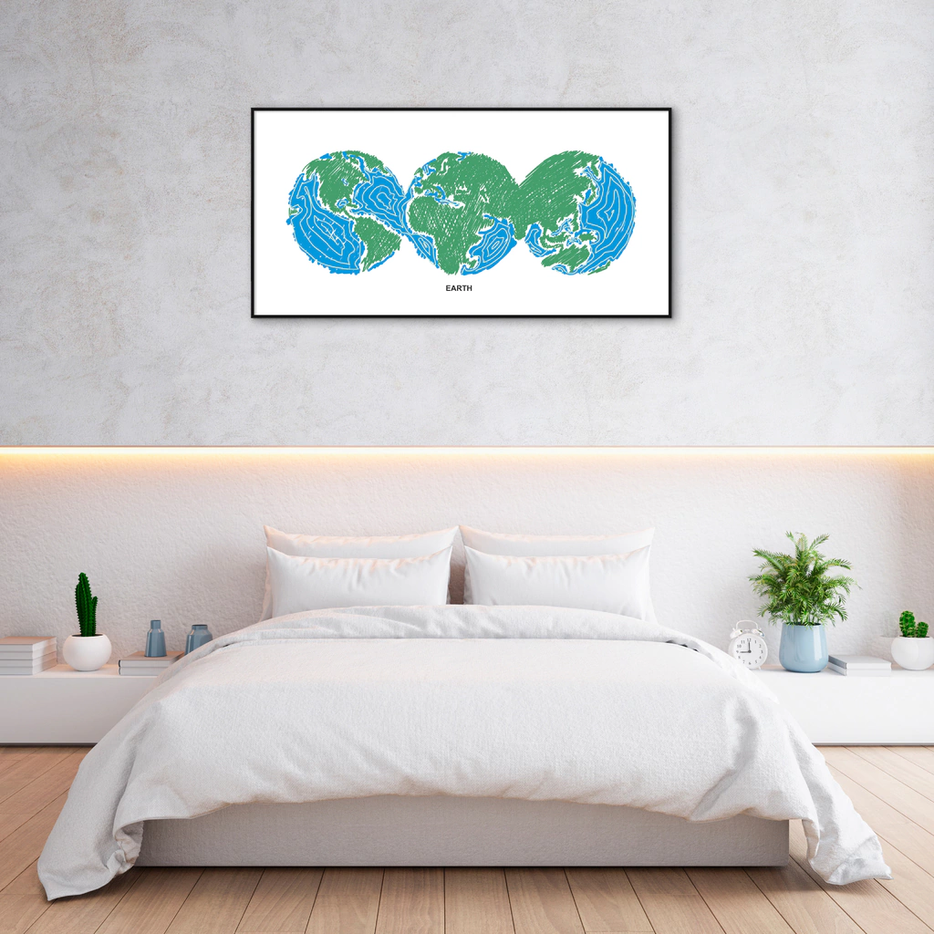 O Quadro decorativo de parede Horizontal ' Mapa Mundi Globos, Draw Art ' da loja Casa do Arquiteto, é fabricado em MDF 6mm revestido Frente e Verso com Melamina, material super moderno e resistente que gera maior proteção, durabilidade e elegância para o produto. As laterais trazem acabamento preto, harmonizando com todos os tipos de ambientes. A Impressão é feita diretamente no substrato, resistente a umidade, esse modo de impressão deixa a peça ainda mais elegante, sem imperfeições e impede que a imagem perca qualidade ou enrrugue/deforme como acontece com quadros que são produzidos com papel, canvas, adesivo ou outro material não tão resistente. Protegidos frente e verso, os quadros são confeccionados em alta qualidade por profissionais que estão a mais de 25 anos no mercado de impressão.