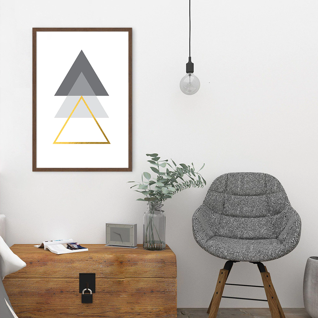 O Quadro decorativo de parede ' Triângulo Escandinavo, Cinza ' da loja Casa do Arquiteto, é fabricado em MDF 6mm revestido Frente e Verso com Melamina, material super moderno e resistente que gera maior proteção, durabilidade e elegância para o produto. As laterais trazem acabamento preto, harmonizando com todos os tipos de ambientes. A Impressão é feita diretamente no substrato, resistente a umidade, esse modo de impressão deixa a peça ainda mais elegante, sem imperfeições e impede que a imagem perca qualidade ou enrrugue/deforme como acontece com quadros que são produzidos com papel, canvas, adesivo ou outro material não tão resistente. Protegidos frente e verso, os quadros são confeccionados em alta qualidade por profissionais que estão a mais de 25 anos no mercado de impressão.
